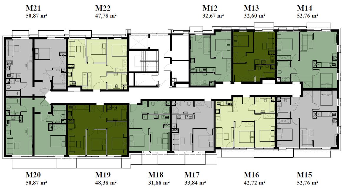 Nowoczesny kompleks 49 apartamentów o zróżnicowanej powierzchni od 31 - 75 m2. 16 apartamentów w układzie szeregowym oraz 33 apartamenty w budynku głównym.